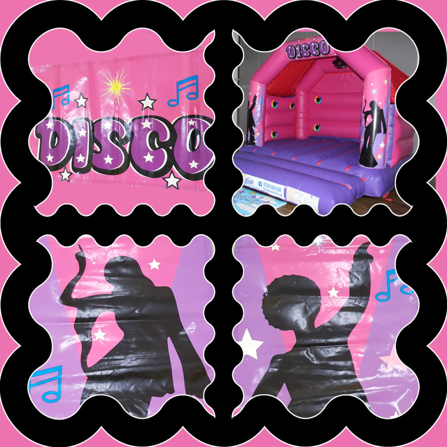 This "Pink Disco" Pink & Purple Themed Bouncy Castle is very popular with our customers and, needs to be booked in advance to avoid disappointment! available in a choice of different bouncy castle sizes making it one of London's most popular bouncy castles.